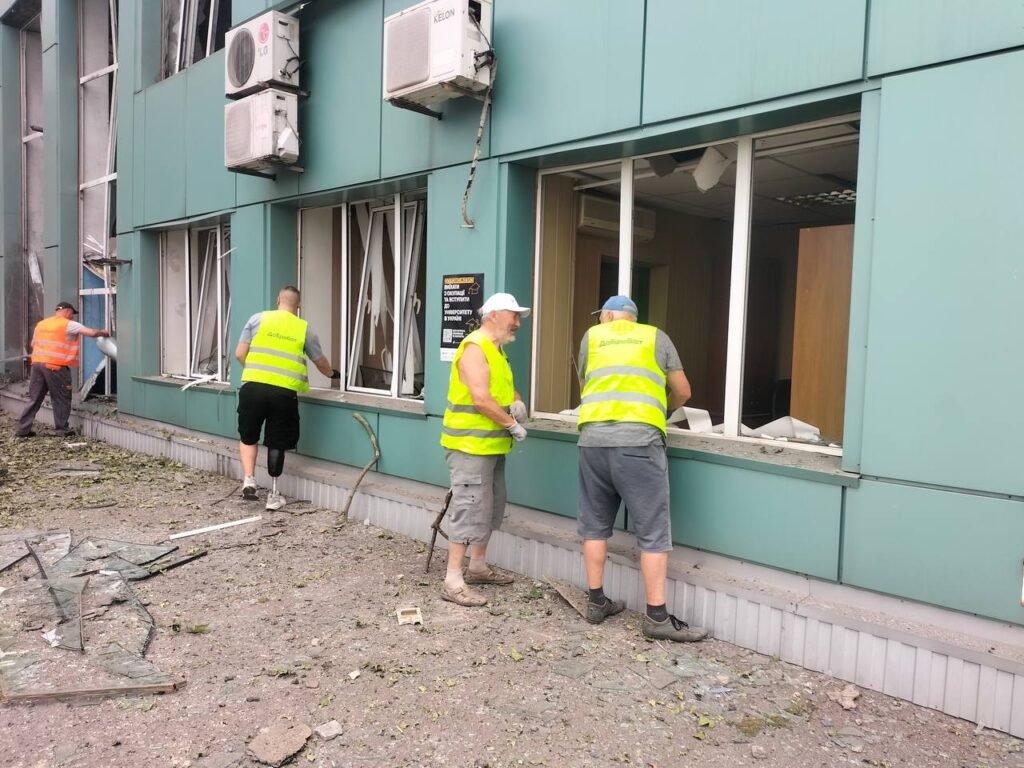 Розбирали завали та закривали вікна після атаки на автовокзал. Протягом дня закрито весь перший поверх будівлі загальною площею 150 м2.