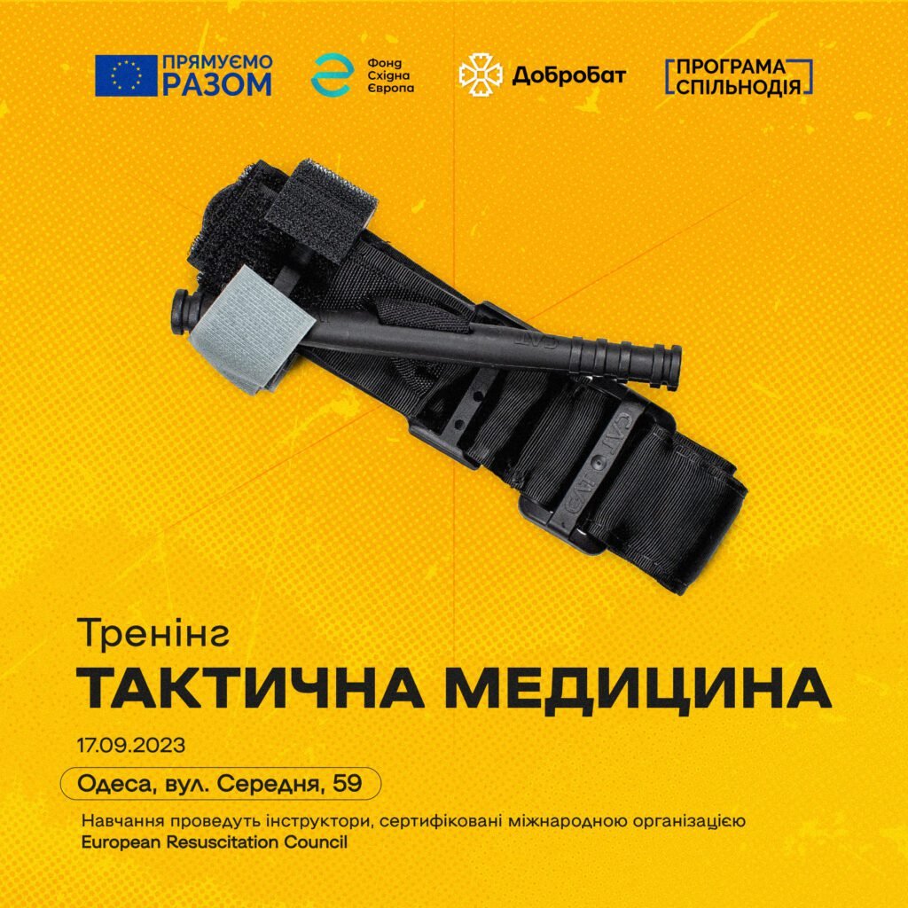 17 вересня 2023 року о 10.00 у м. Одеса, вул. Середня, 59, відбудеться тренінг із тактичної медицини, організований громадською організацією «Добробат – добровольчий будівельний батальйон» за участі ТОВ «ЦСП «САР».